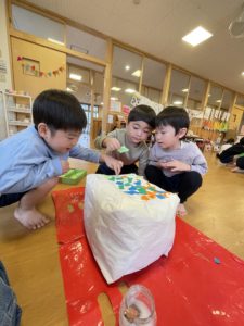 弓取こども園では子どもたちが主体的に遊び、 「やってみよう」「してみたい」「これはどうなるのかな」 という興味関心を大切にしています。 行事は日々の子どもたちの遊びを活かしながら取り入れております。