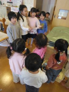 弓取こども園では、兄弟姉妹のような関わりを持ち、信頼といたわりの気持ちを育てる