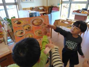 皆がお正月までに具材を作ったおせちが三段あり、その段の中からチームで相談し、一段選びます。