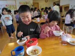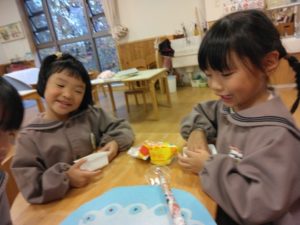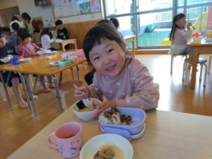 箸の持ち方が上手な子が増えてきて来ました!まだ、「箸難しい…」と言う子も箸の持ち方を意識しながら集中してのせていましたよ!