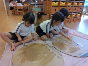 子どもたちの中で、これは強いコマ、たくさん回るコマ、というのがあるようで毎日のようにお気に入りのコマを選んで遊んでいました。