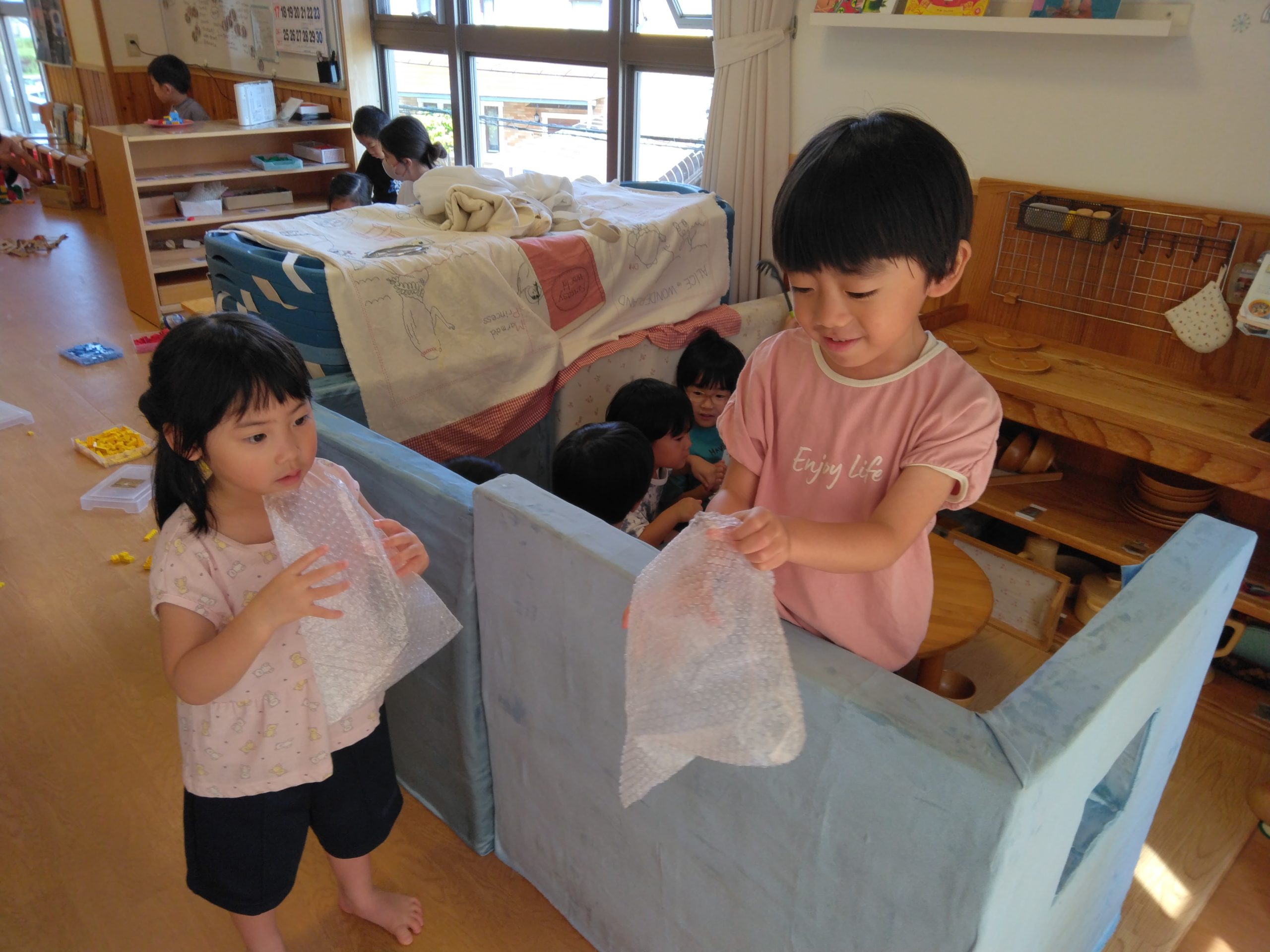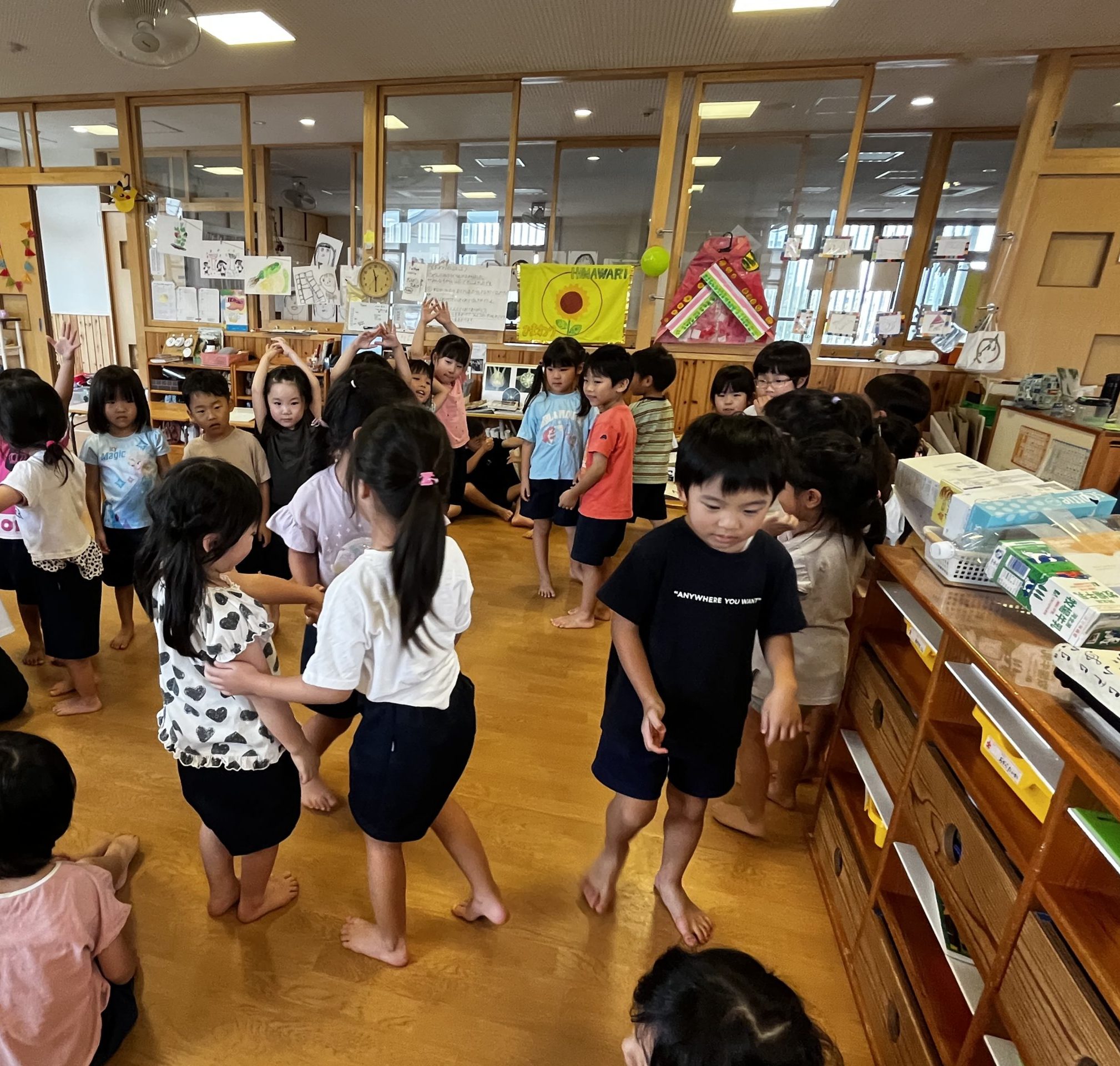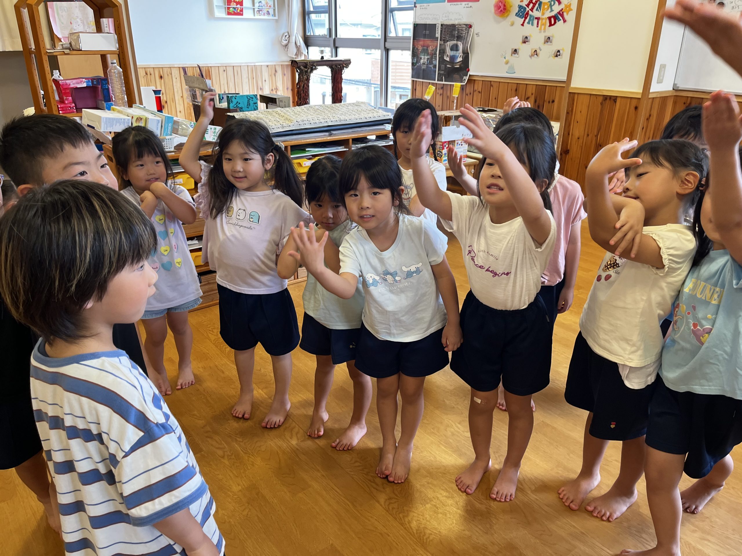 その後のサークルタイムでは、おいもを見つけることができた子に「どうやって掘ったの?」と聞くと、
