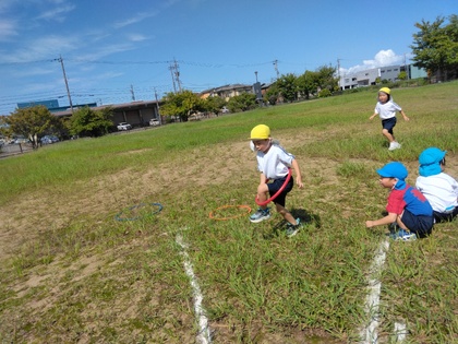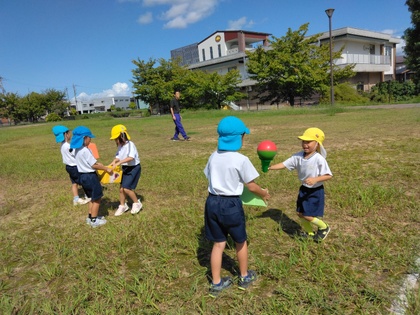 まだしたことがない子が多くいたので、遠足前に、園横の砂場でおいも(スコップ)探しをしてみることにしました。