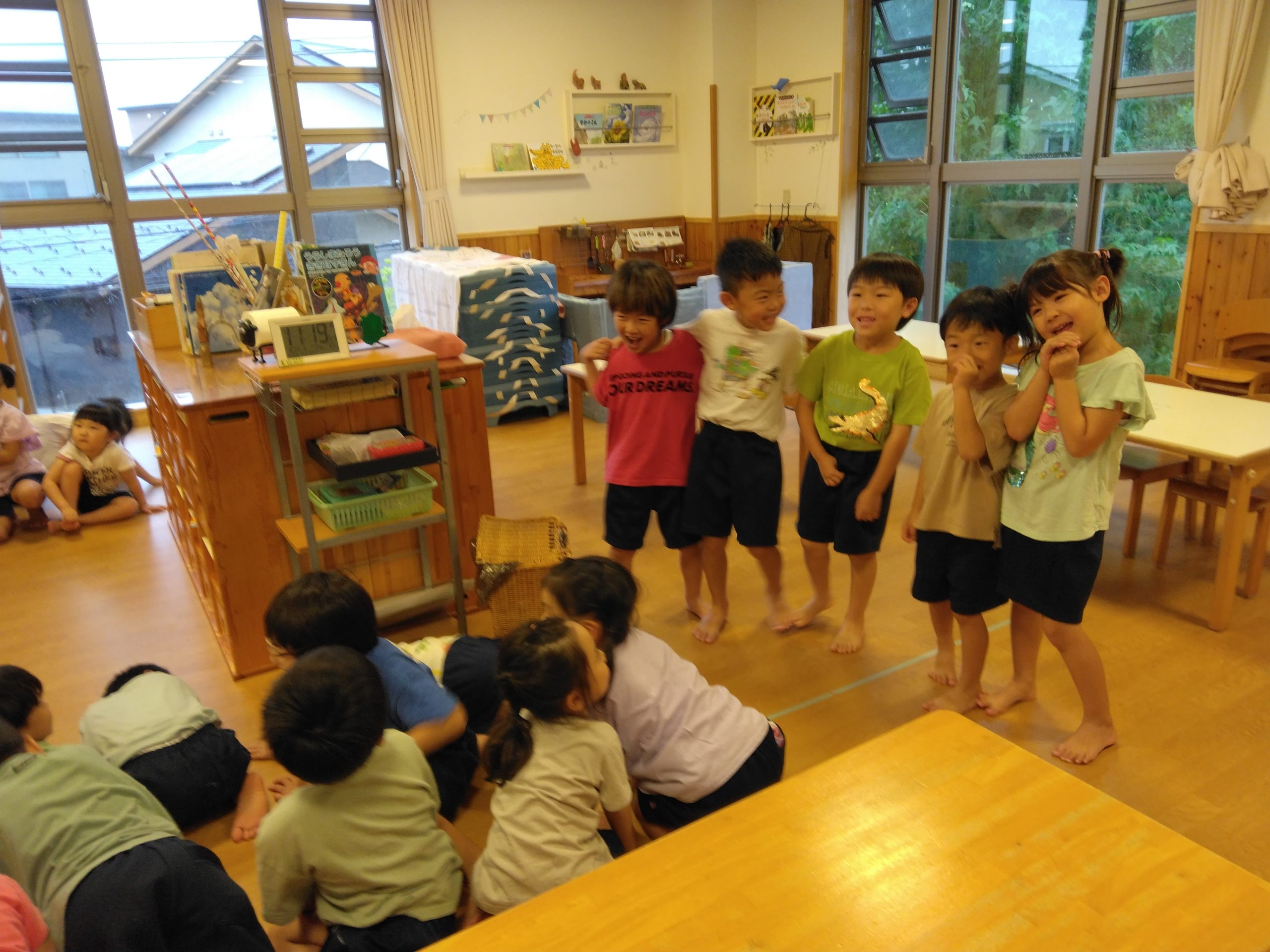 絵本を読み終えると「私はおとひめさま役したいな~」「カメがいい!」「おれは浦島太郎にする!」など早速役を決めている子が!(笑)