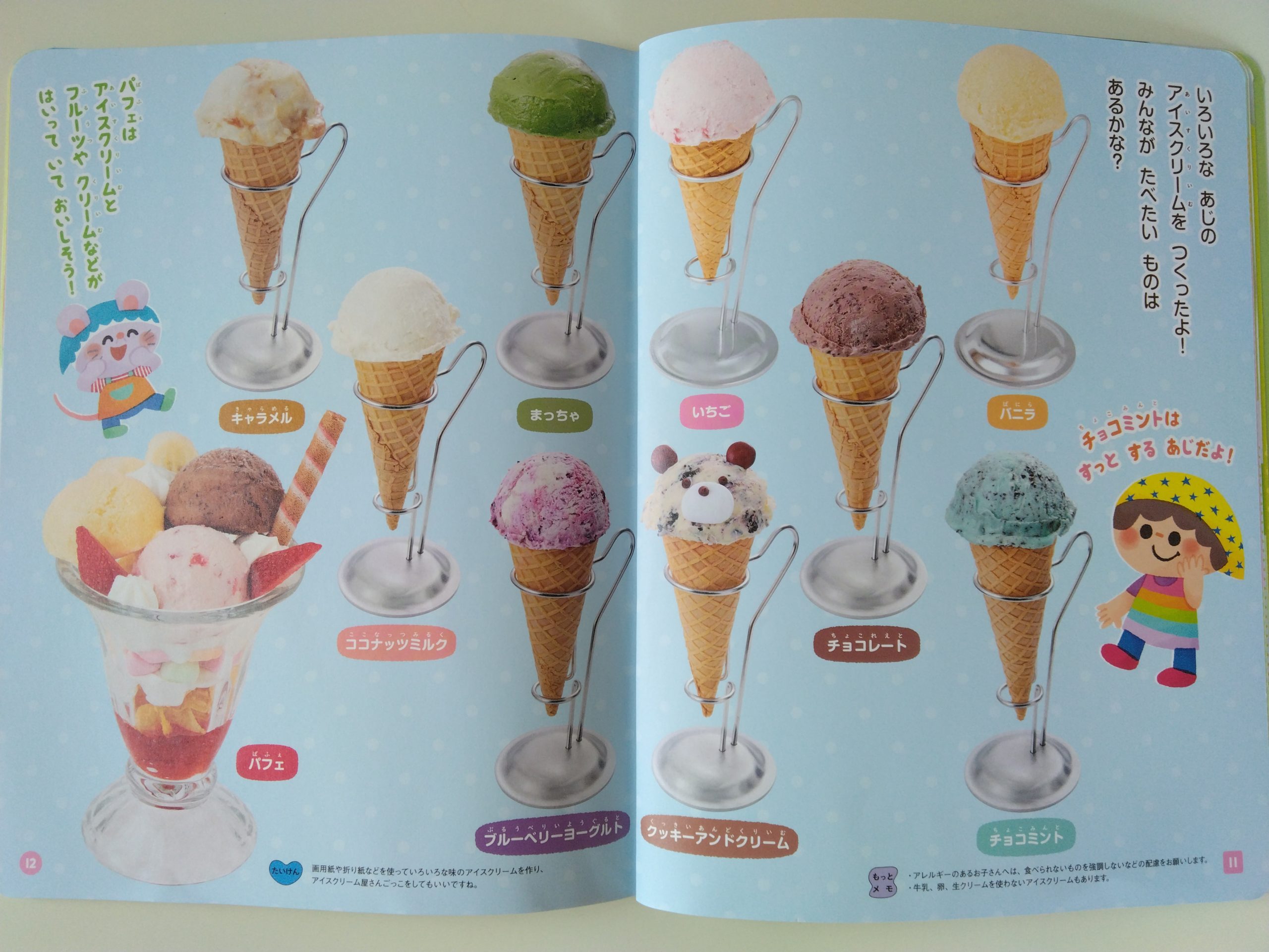 今月のページには、アイスのページがあり「私このイチゴのアイスが好き!」「私はこれ食べたことある~!」などと盛り上がっていました。