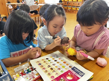 その中で「アイスを作りたい!」という子も!紙を丸めたり、カラーテープを貼ったりと自分オリジナルのアイスもたくさん作っていましたよ😊