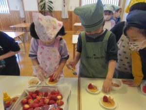 どうして冬にいちごがあるの?とみんなに問いかけると、いちごの時期だから!「旬だから」と言っていました。