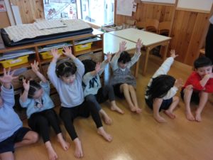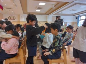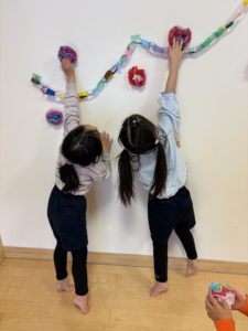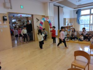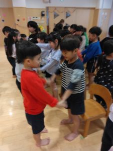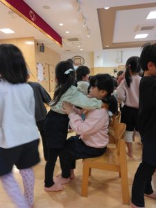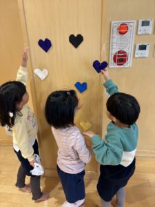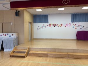 ありがとうの会に向けて、以前のサークルタイムで「ありがとうの会の前にホールのお掃除したらいいんじゃない?」「飾りつけも!」と話していたので、まずどこの掃除をするのか話し合いました。