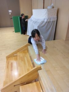 ホールに着くとすぐに掃除に取り掛かる子どもたち!