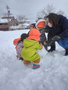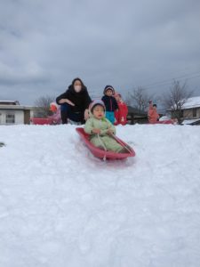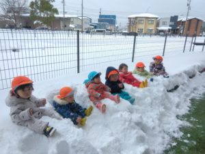 他には、大きな雪だるまを保育者と一緒に作ったり、雪の斜面を登り降りしたりと雪遊びを満喫しました!!