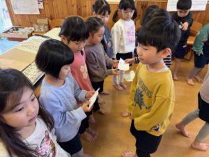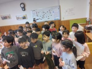先週の金曜日に、こども園のみんなが年長さんありがとの気持ちを込めて『ありがとうの会』を企画して、たくさんのありがとうを伝えてくれたり、歌やダンスなどでたくさん楽しませてくれました。
