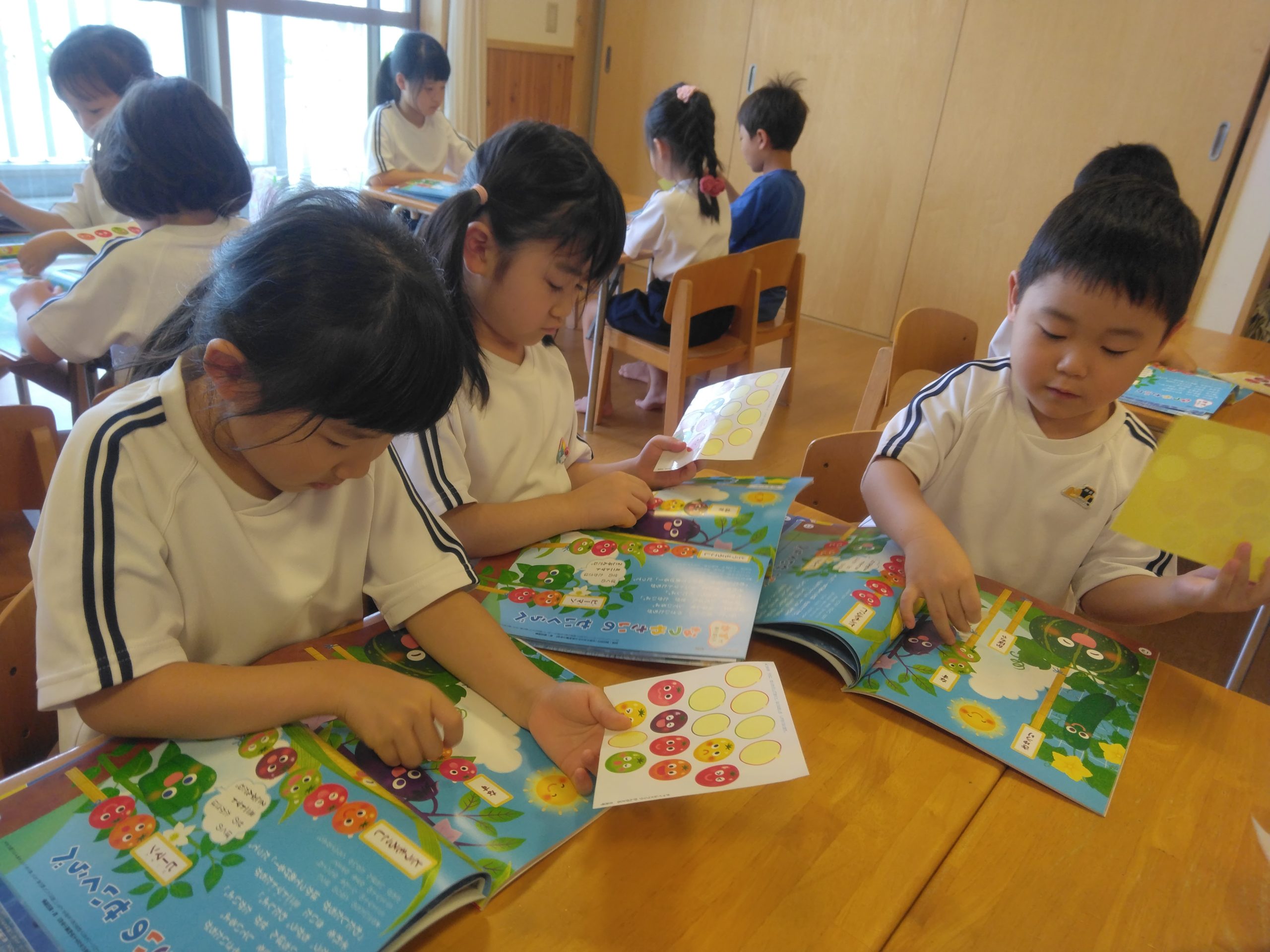 シールのトマトにも色々な色があり、色を合わせたり、カラフルなミニトマトを並べたり、貼り方に子どもたちそれぞれの個性が出ていました😊