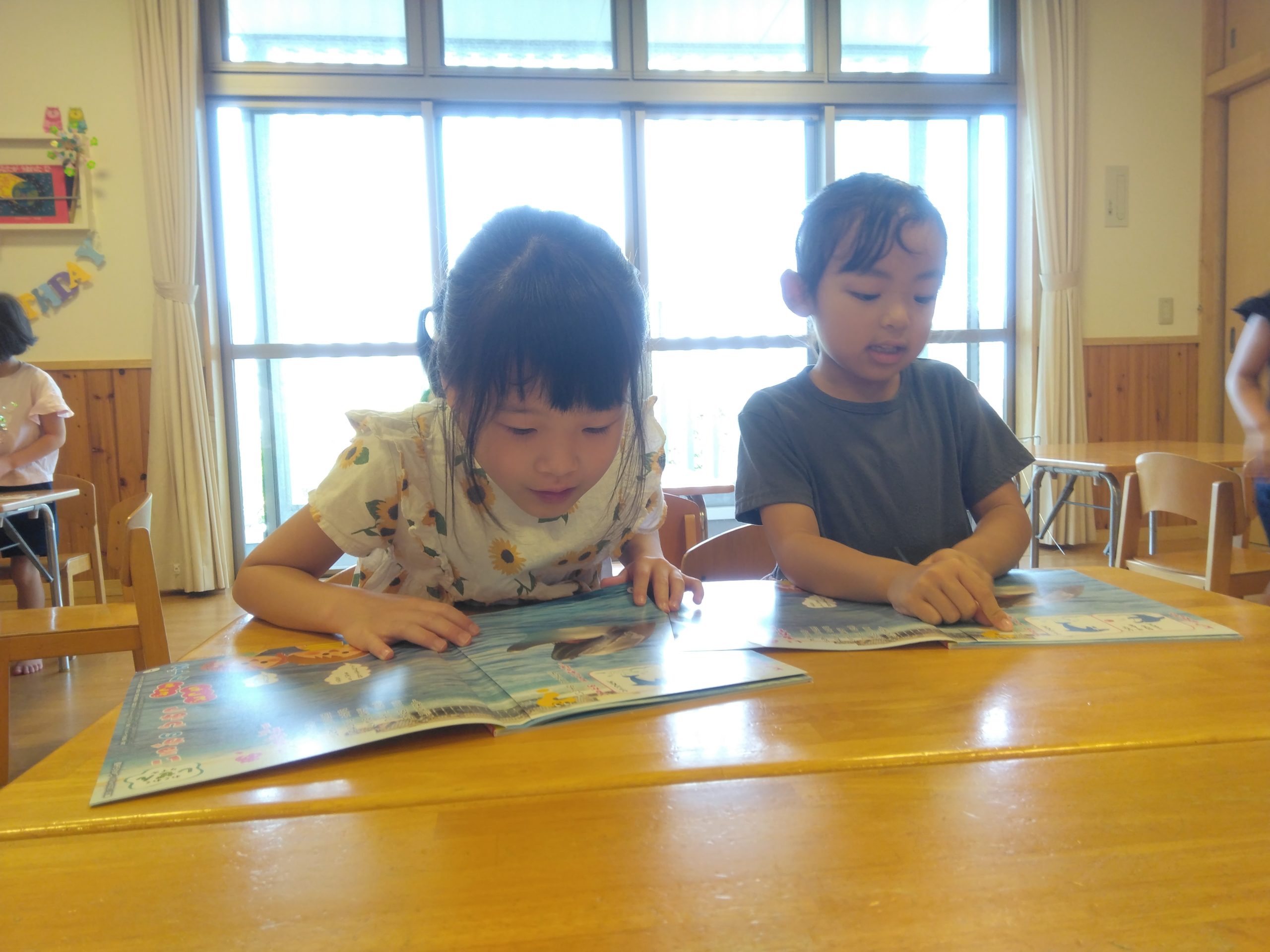 とても興味深かったのか、好きな遊びの際に友だちと何度も絵本を開き、もっとイルカのことを知ろうとしていましたよ〜