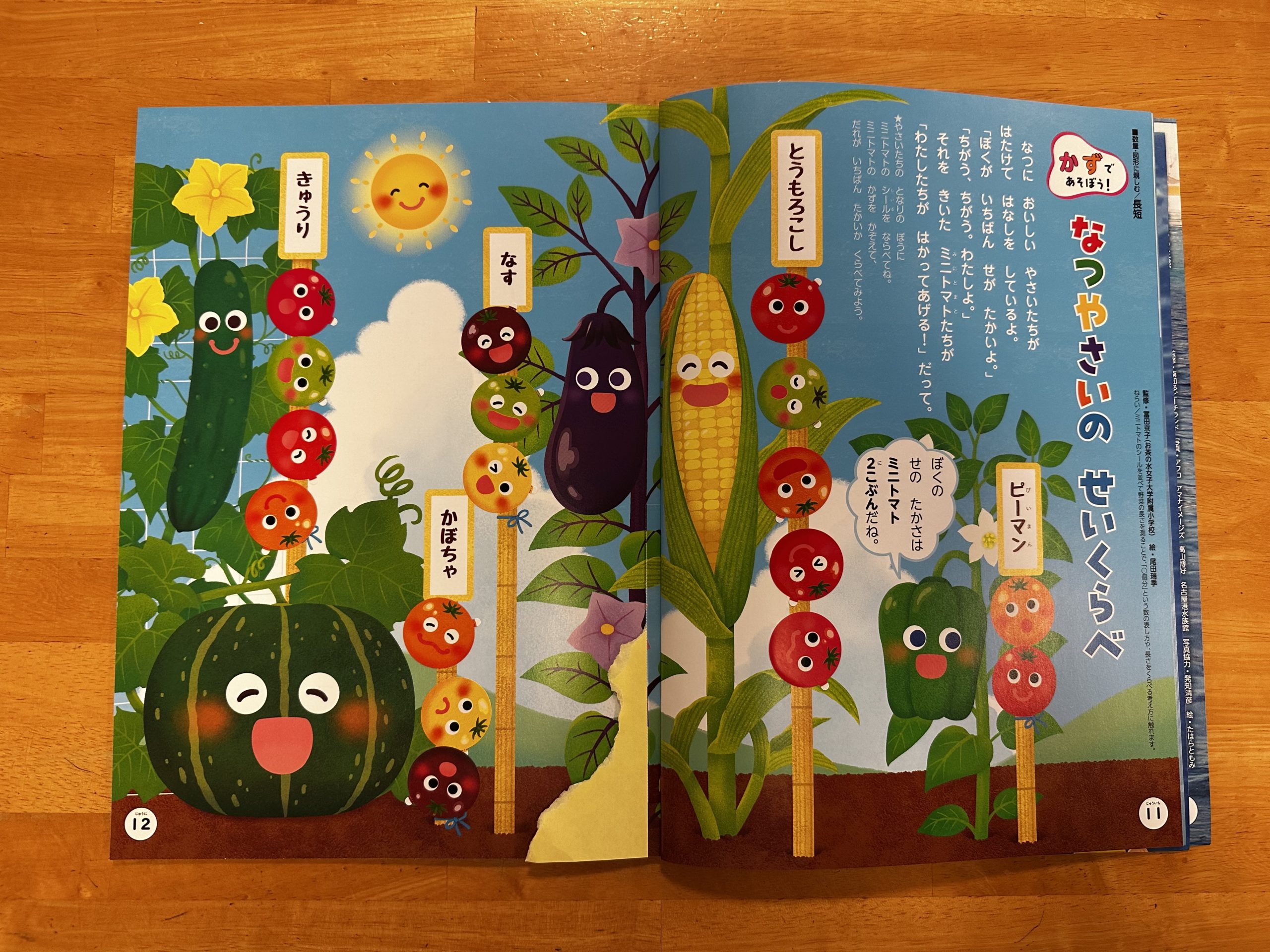 「え、きゅうりってトマト〇個分なんだって!」「かぼちゃ大きいけど、トマト少ないね。」