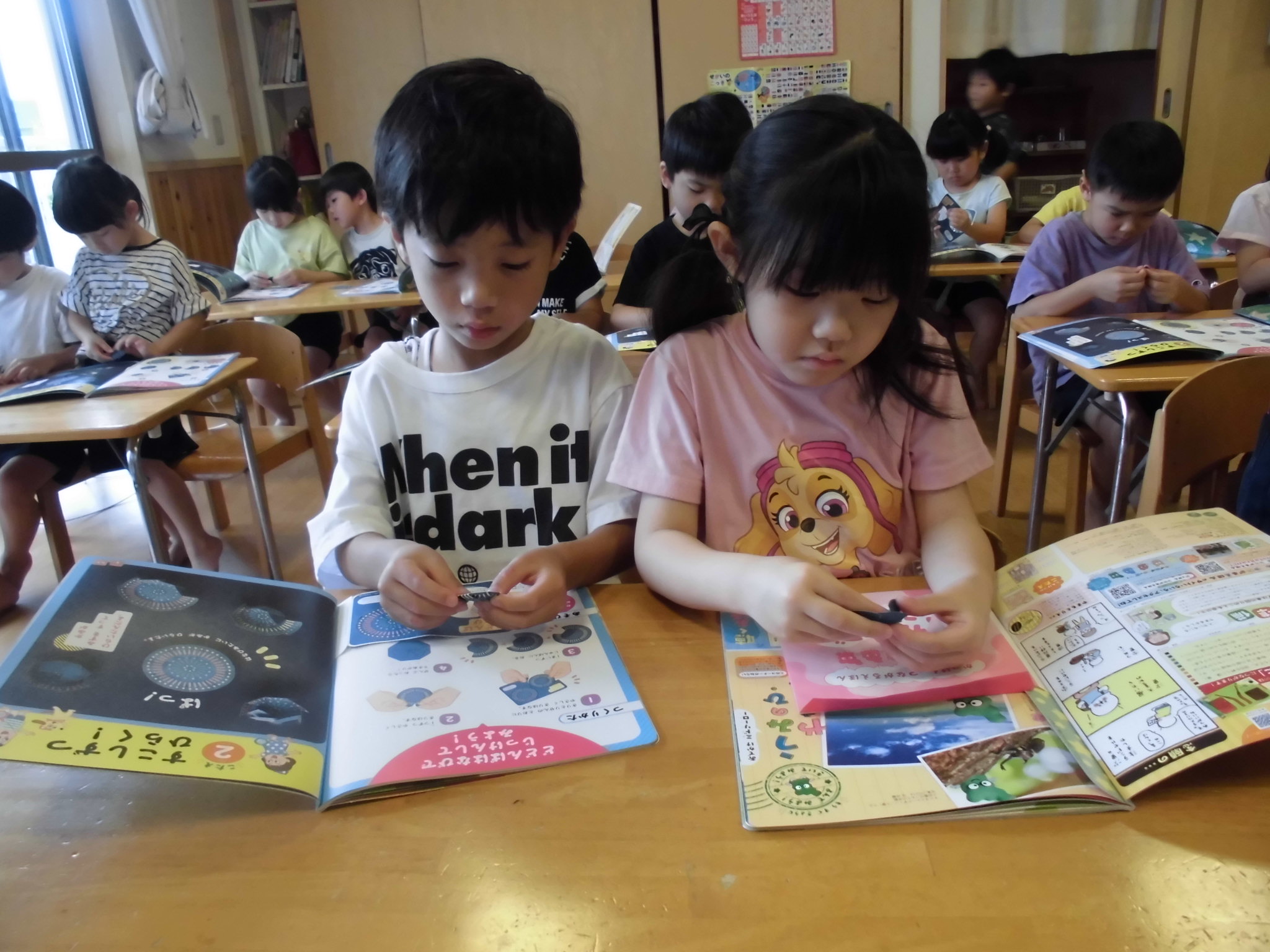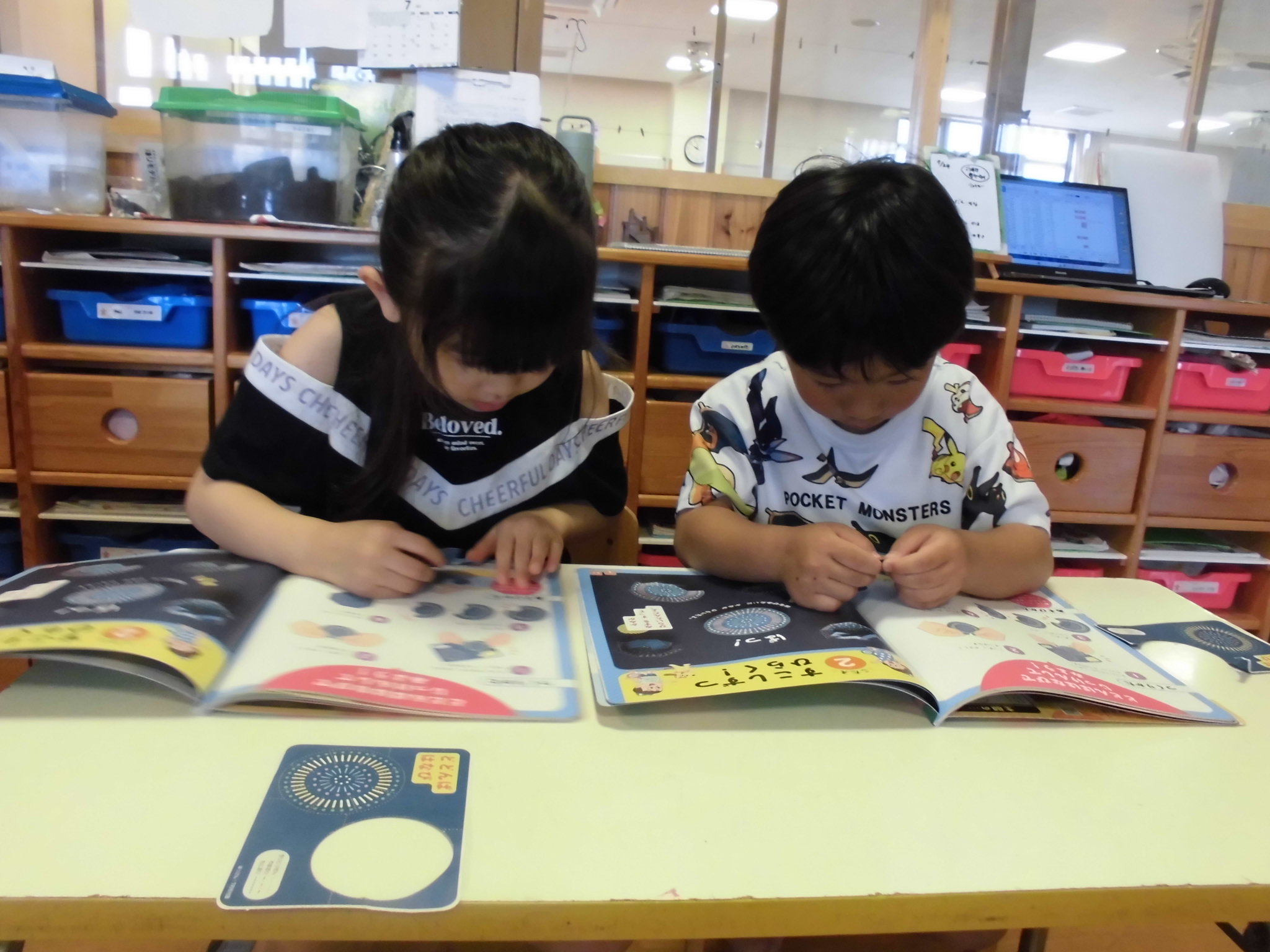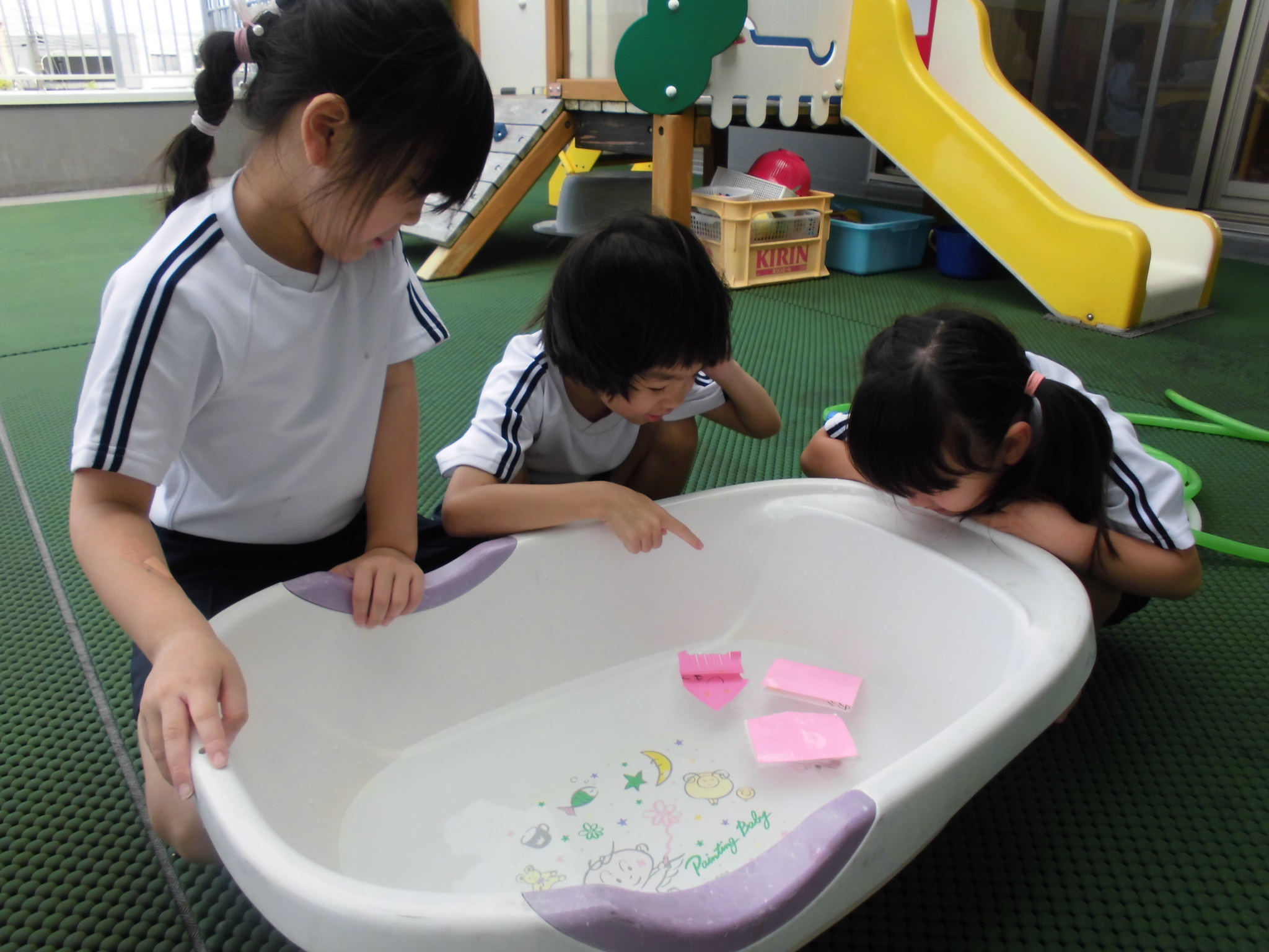 「僕の浮いたよ!」「これは私の~」「じゃあ誰が早く開くか、勝負ね!」と友だちと競い合い花火を咲かせます。