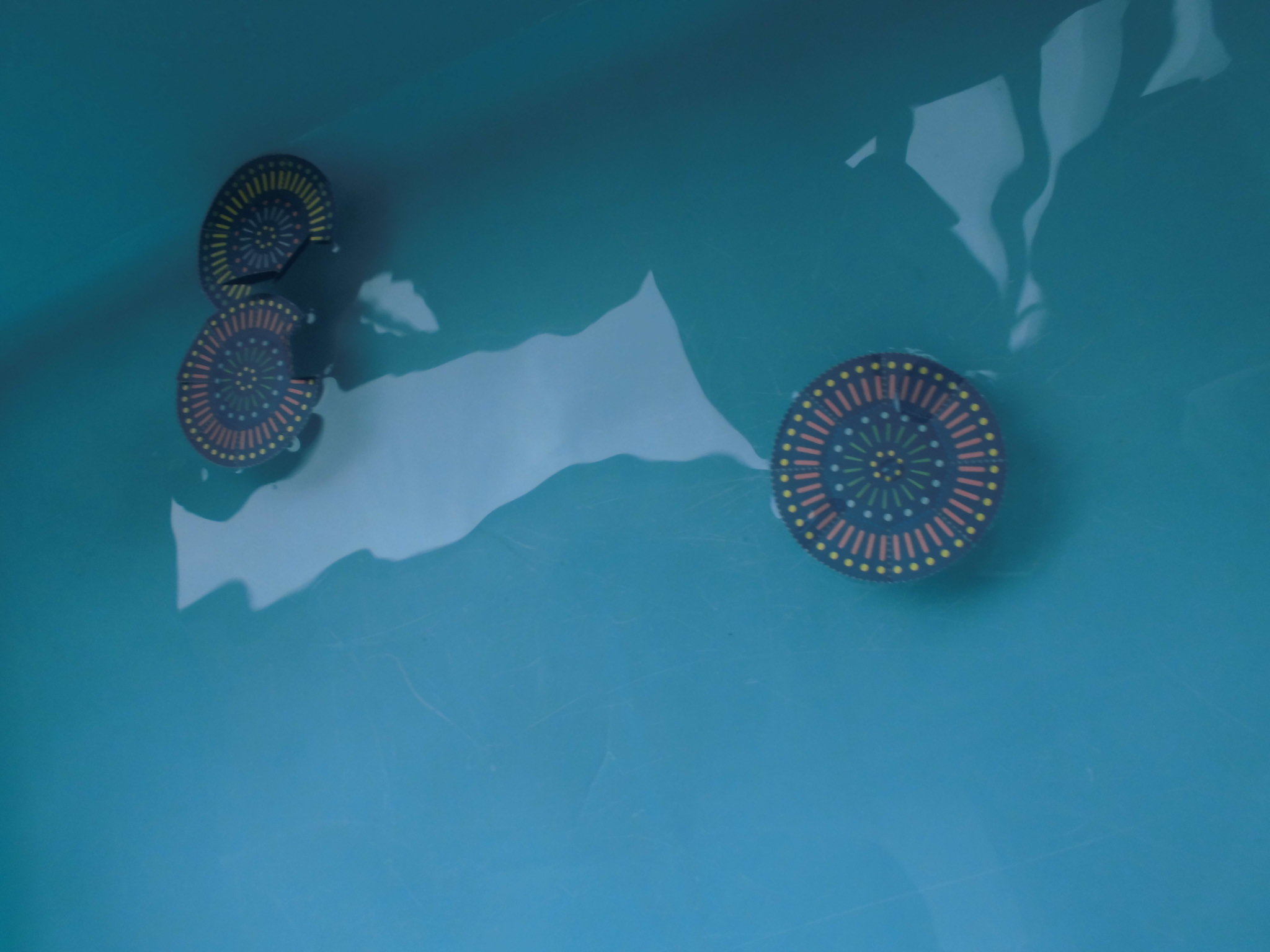 水の上で無事に花火は開くかな~とドキドキしながら、水に浮かべてみました!
