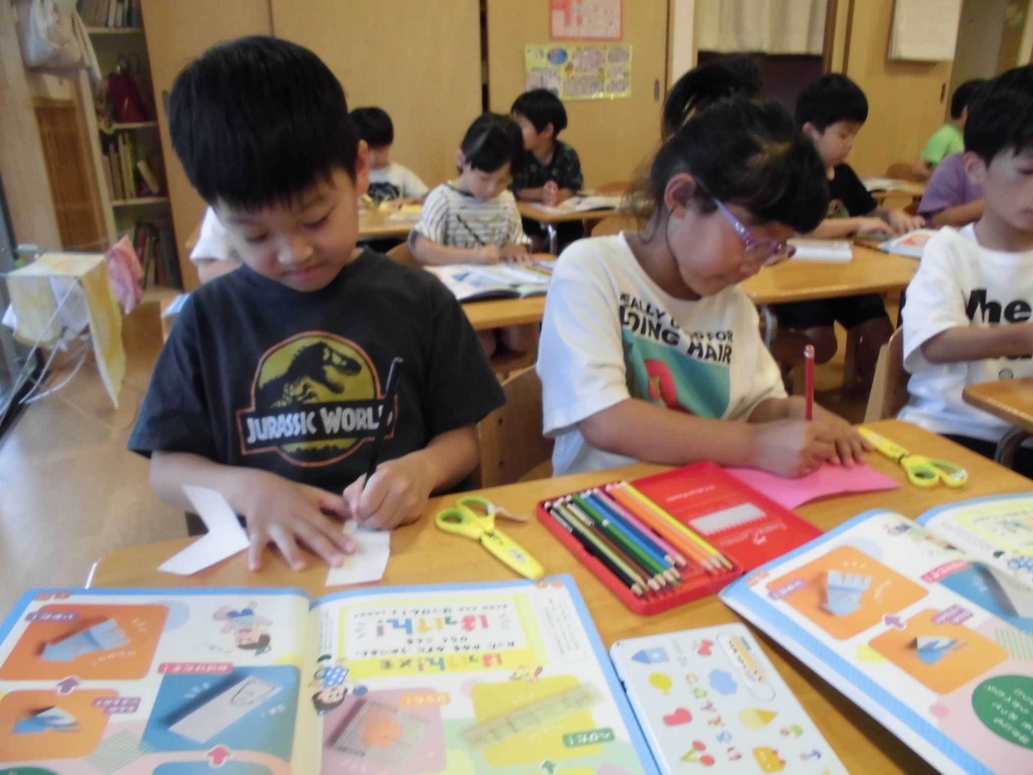 「破れないできれいにとれた!」「どうやってするのかな?」としっかり折り方をみて確認しながら折っていきます。