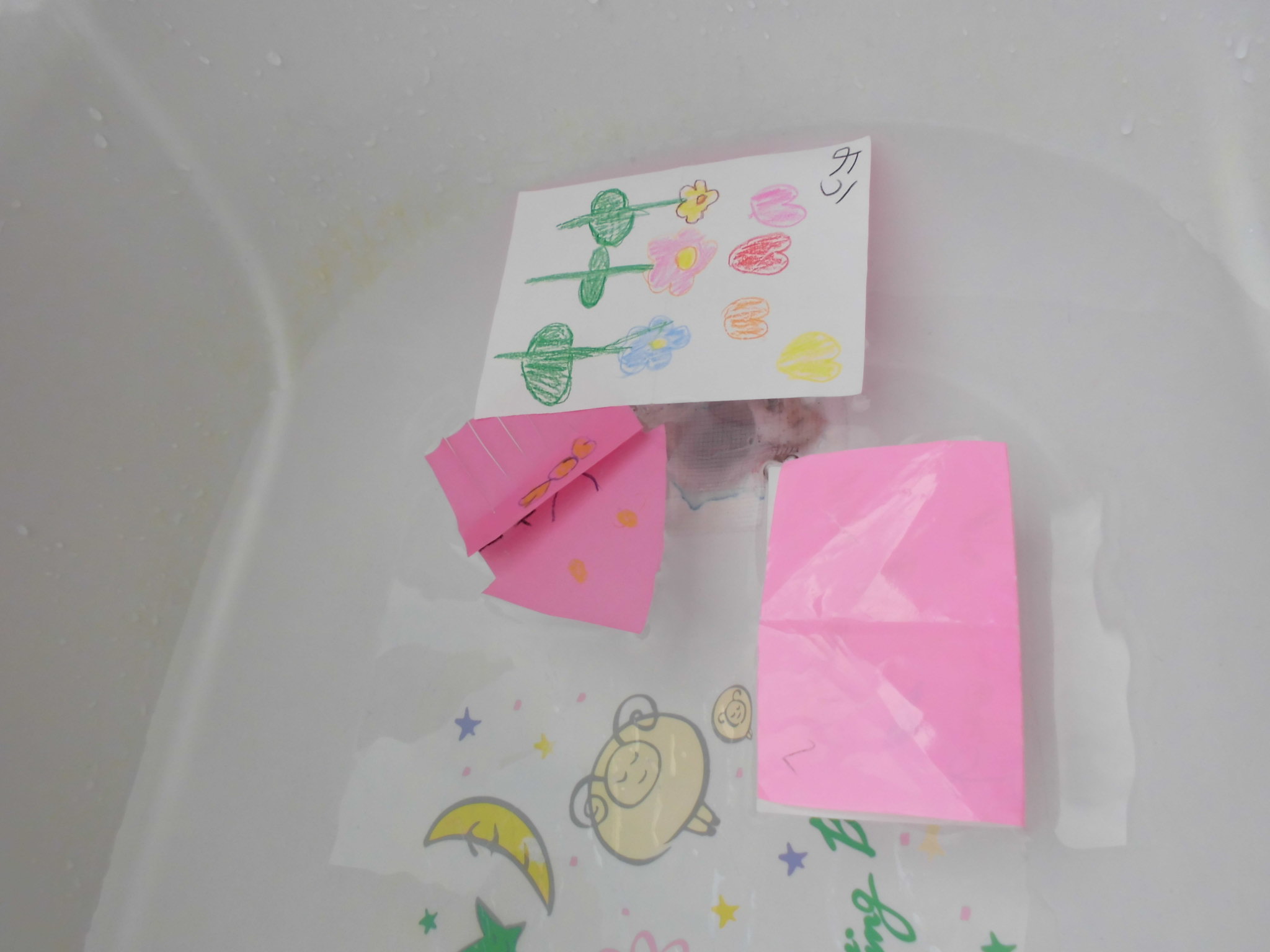 「紙の中に水が吸い込みすぎて、くっついたから開かなかったんじゃない?」と話してくれました。