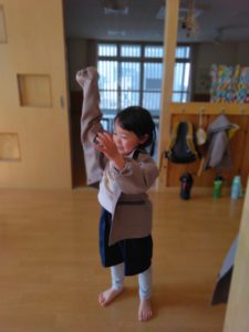 外に行く時や、帰る時には制服を自分で着てみます!難しい時にはお世話のさくらさんが手伝ってくれます!