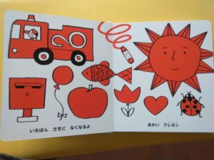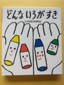 少しずつ「あか」や「あお」など色がわかるようになってきた子どもたちは♬どんないろがすき♬の歌が大好きになり、歌絵本をエンドレスで「よんで!」と言うほど…