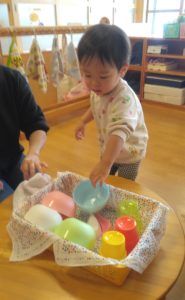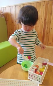 まずは、ままごと遊びでお料理を作り…