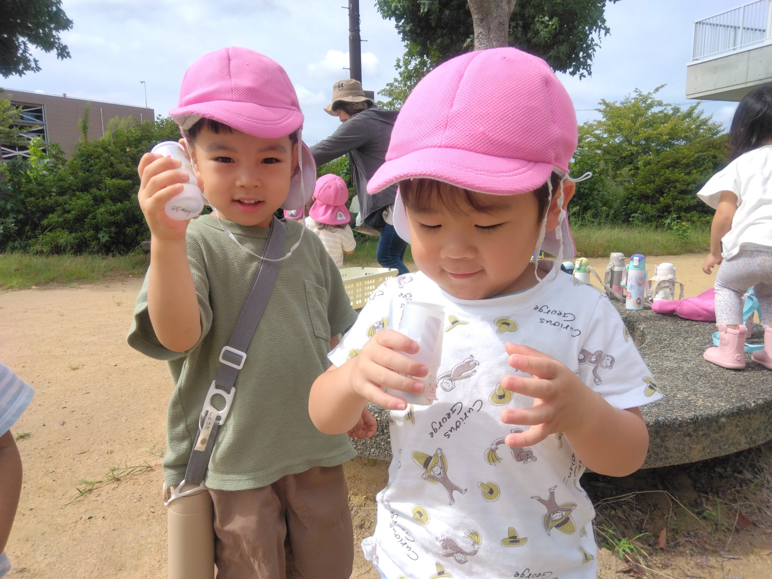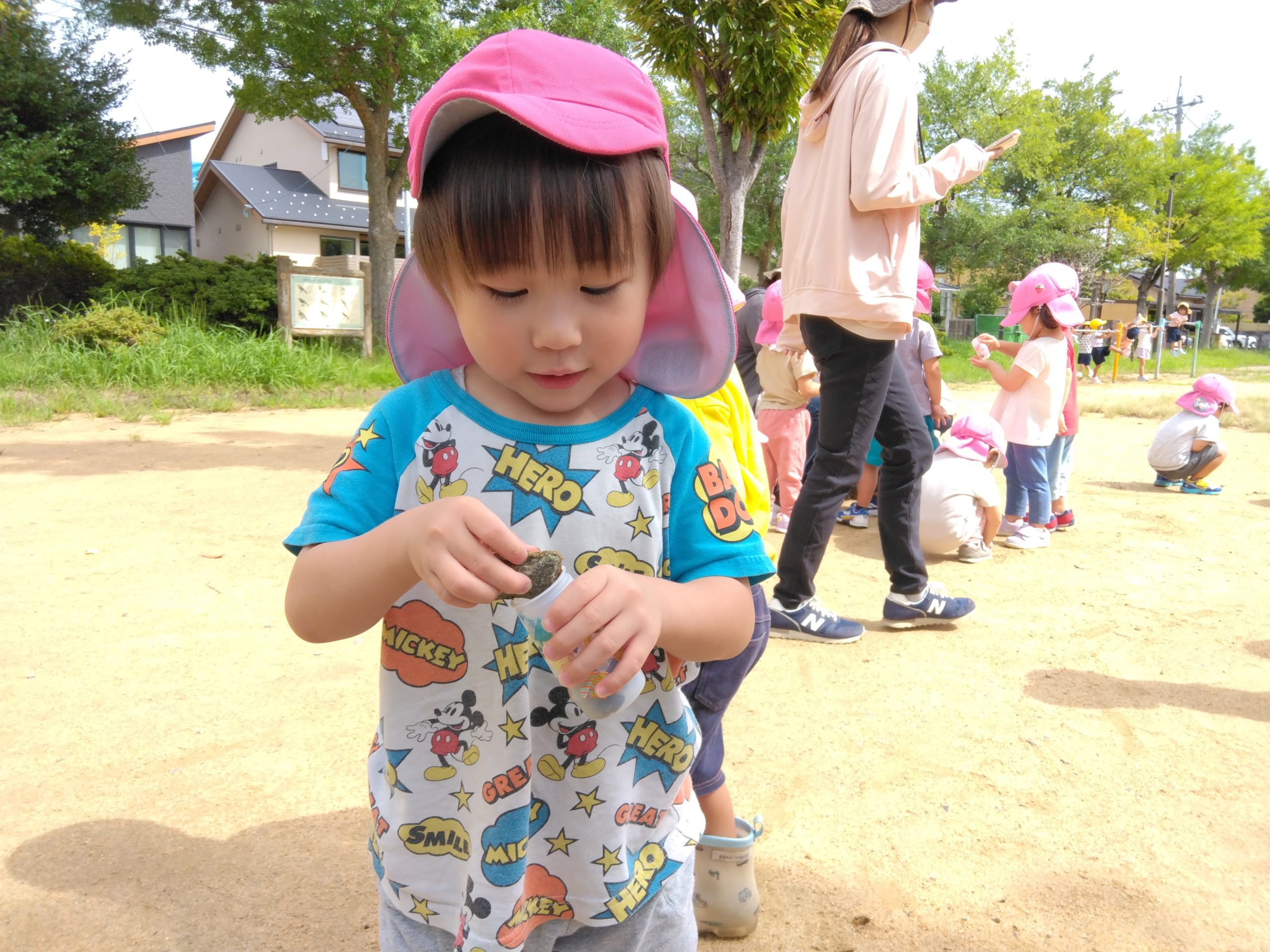 次の日、容器に入れる小石を公園に探しに行きました。