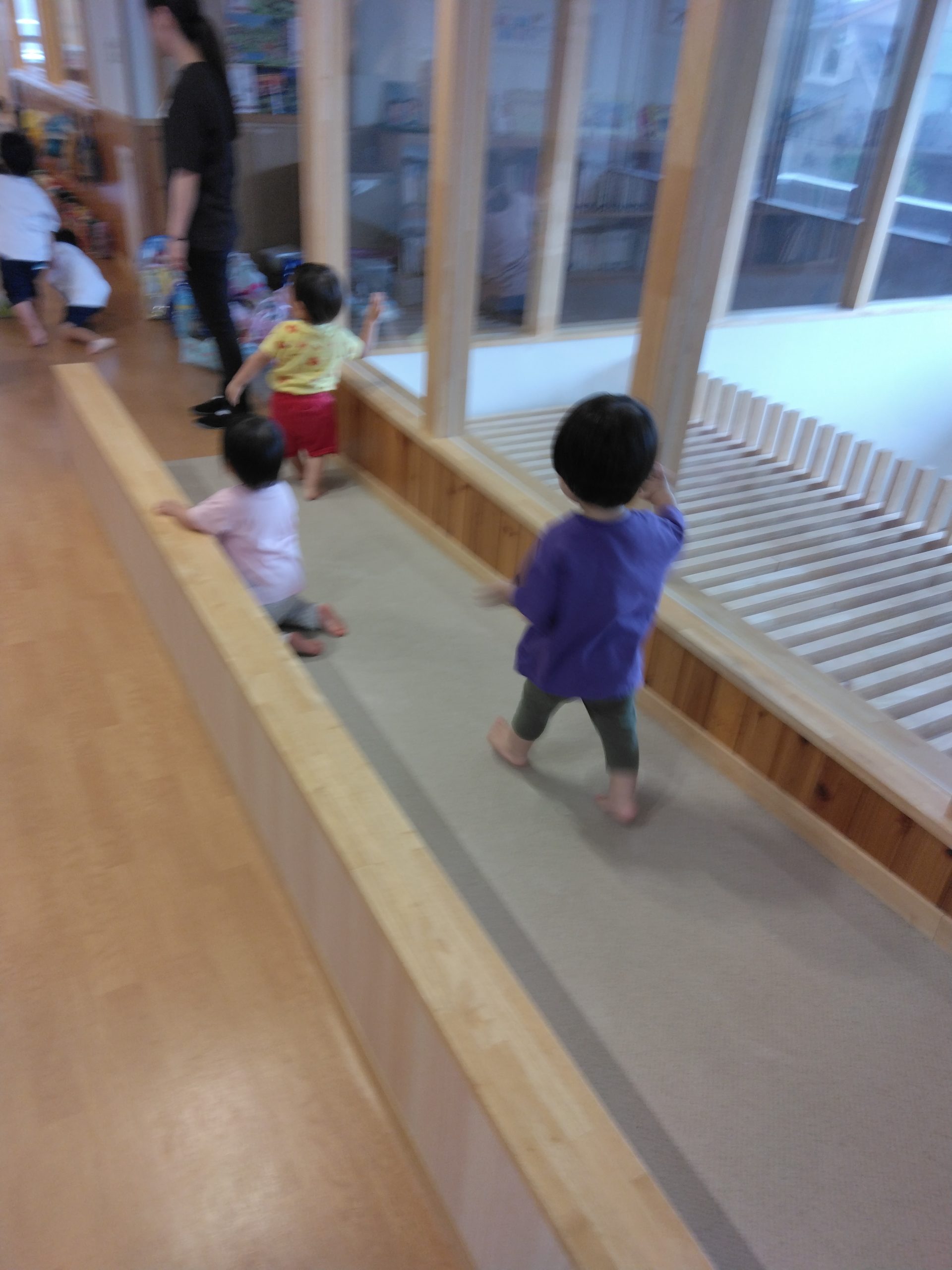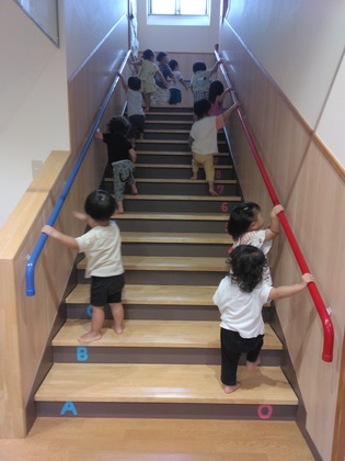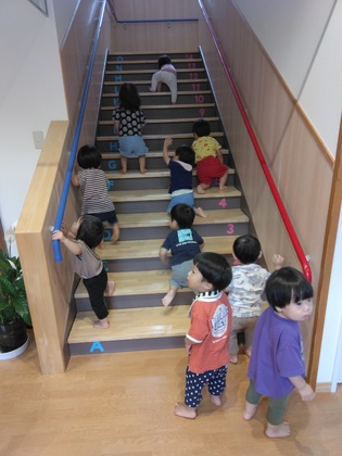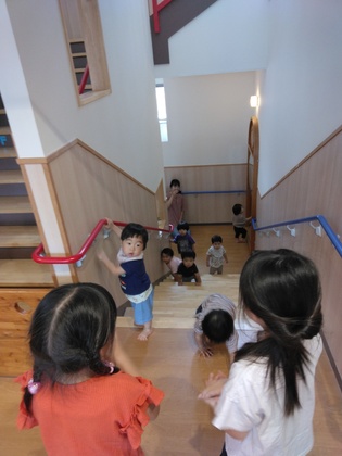 月齢の高い子は手すりにつかまってずんずん登っていきます!