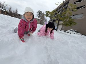 さっそく雪遊びセットをたくさんの子が持ってきてくれたので雪遊びをしました。